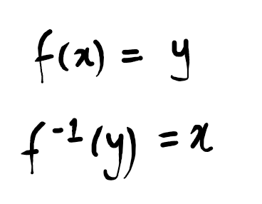 $f(x) = y \iff f^{-1}(y) = x$