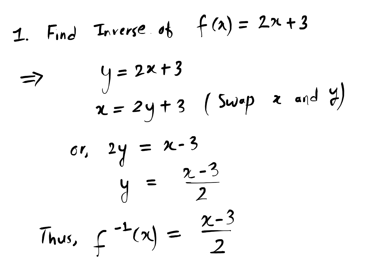 - Find the inverse of $f(x) = 2x + 3$.