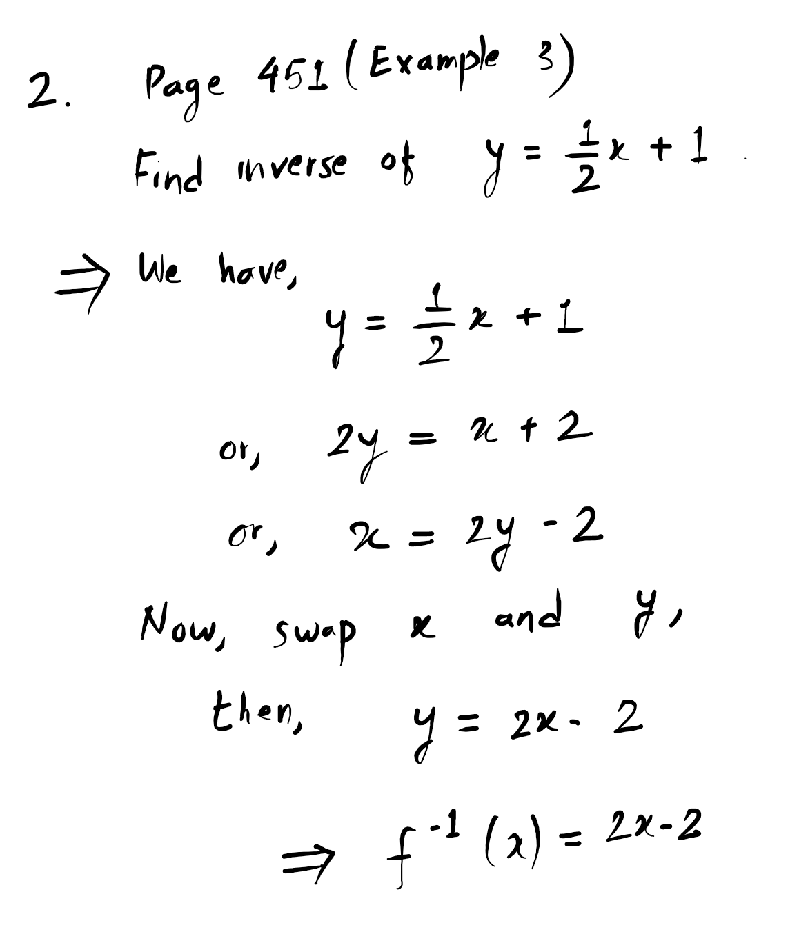 2. Find the inverse of $y=\frac{1}{2}x + 1$.