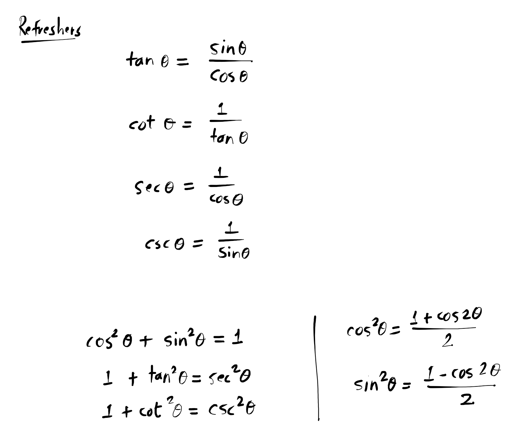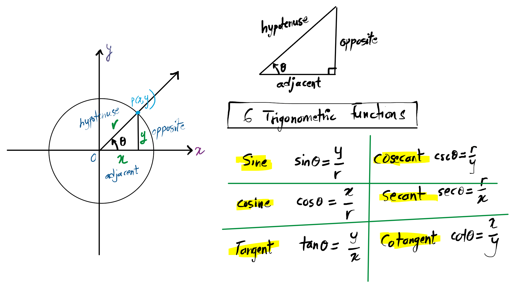 Six basic trigonometric functions.
