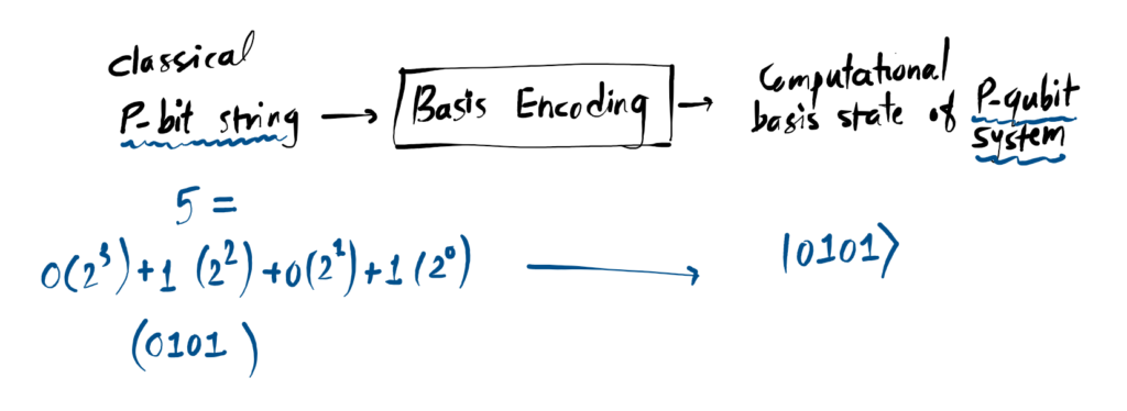 Think of this as “compressing” information into the probability of a state. We store data in the coefficients of the wavefunction. While space-efficient, it requires complex Initialization circuits that can be quite deep.