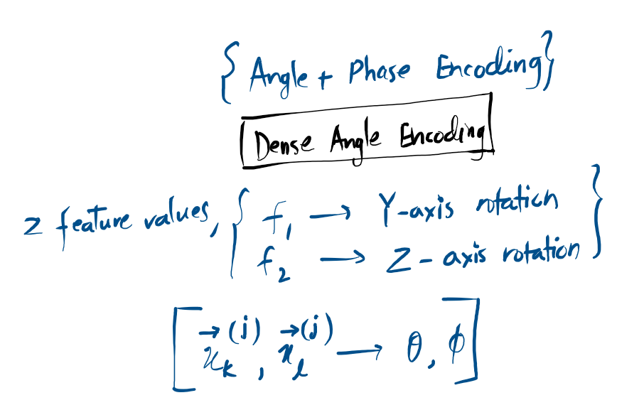 • Phase Encoding: Feature values are rescaled into the range \( (0, 2\pi] \).