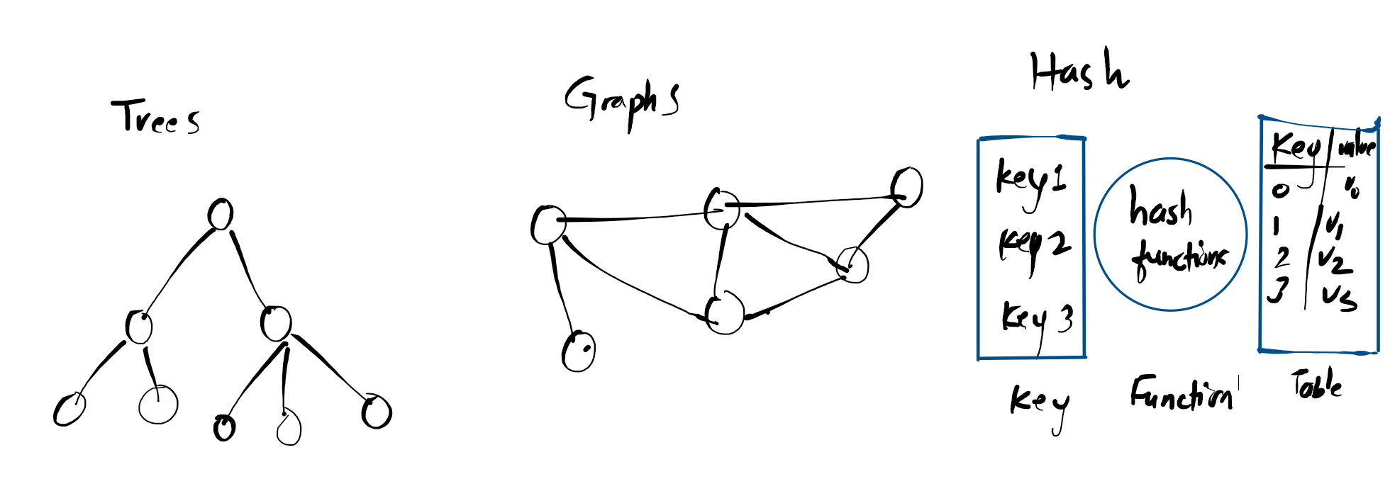 - Trees: Hierarchical structure with a root node. https://www.w3schools.com/dsa/dsa_theory_trees.php