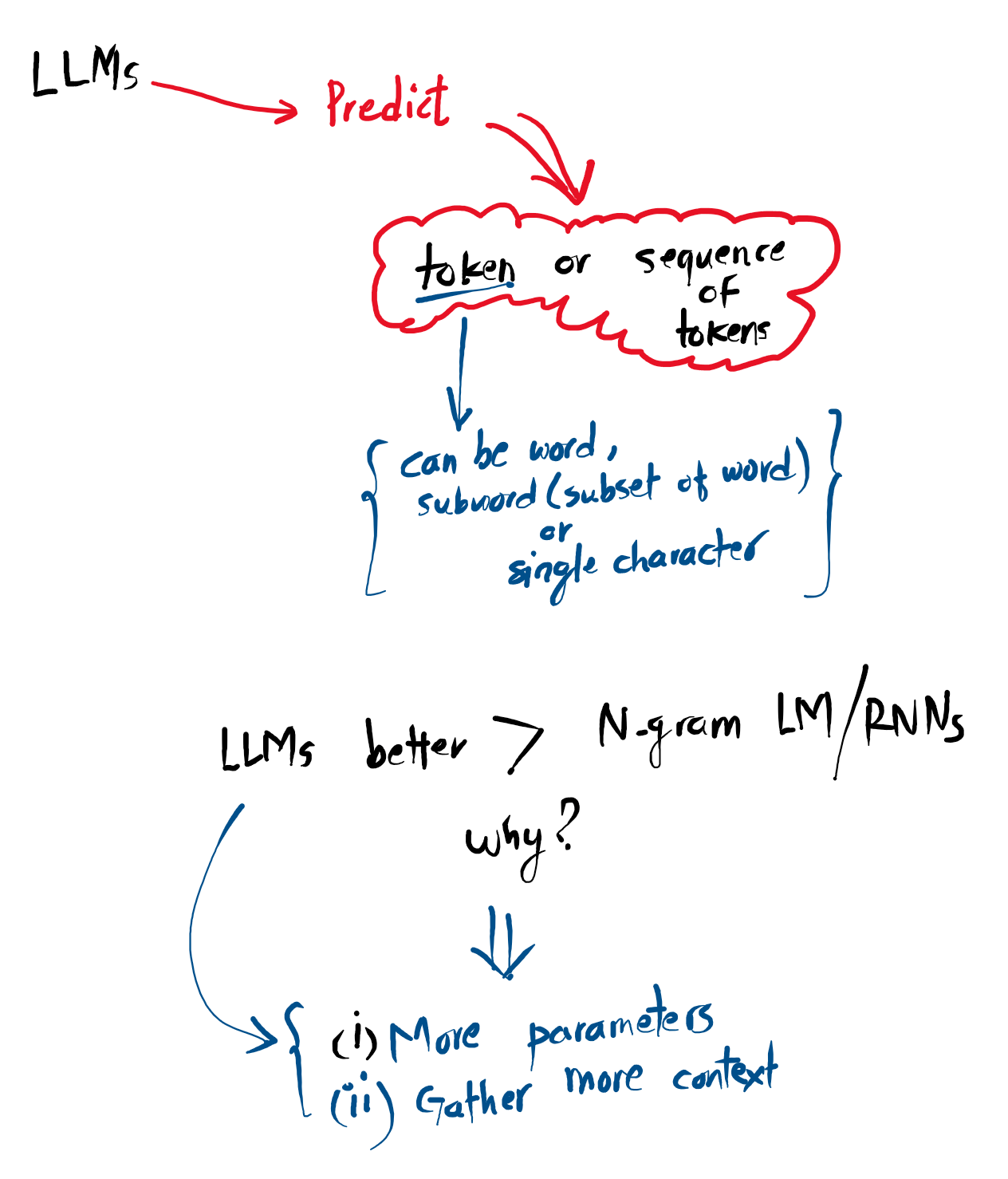An LLM is a predictive technology that estimates the next “token” (word, character, or subword) in a sequence. They outperform older models (like N-grams) because they use vastly more parameters and can process significantly more context at once.