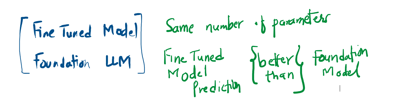 Fine tune models can perform better in prediction than foundation LLM’s prediction. But sill, the number of parameters in both the models are same.