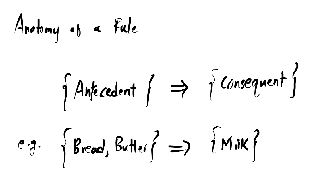 For example: {Bread,Butter}⟹{Milk}